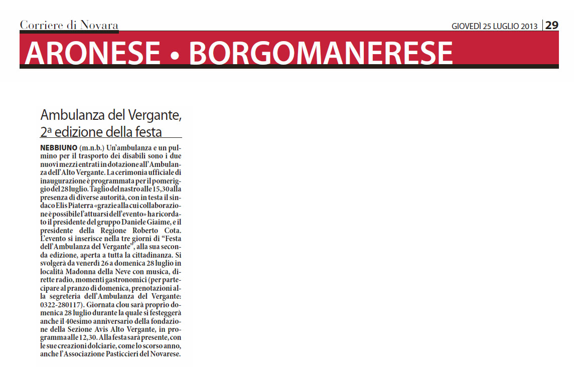 Area StampaRassegnaStampa Corriere di Novara – Volontari Ambulanza del Vergante – Ambulanza del Vergante, 2ª edizione della festa 25 Luglio 2013 Corriere di Novara – Volontari Ambulanza del Vergante – Ambulanza del Vergante, 2ª edizione della festa (file JPG) Tweet