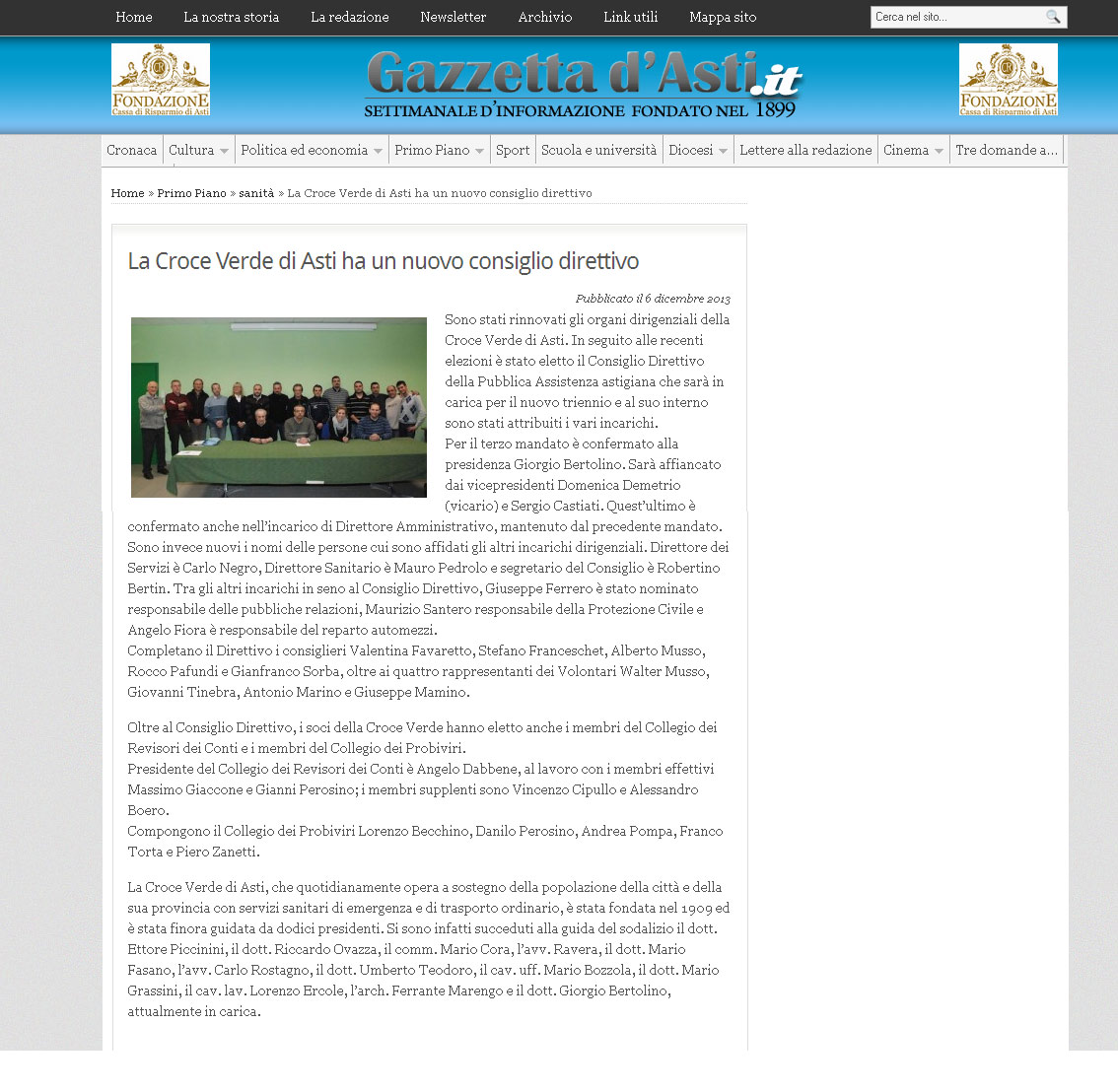 Area StampaRassegnaWeb Gazzetta d’Asti.it – Croce Verde Asti – La Croce Verde di Asti ha un nuovo consiglio direttivo 6 Dicembre 2013 06/12/2013 – Gazzetta d’Asti.it – Croce Verde Asti – La Croce Verde di Asti ha un nuovo consiglio direttivo Tweet