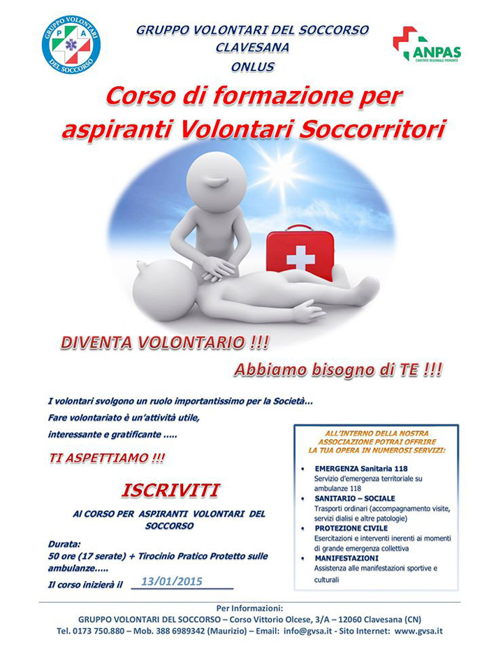 Gruppo Volontari del Soccorso Clavesana: corso di formazione per aspiranti volontari soccorritori