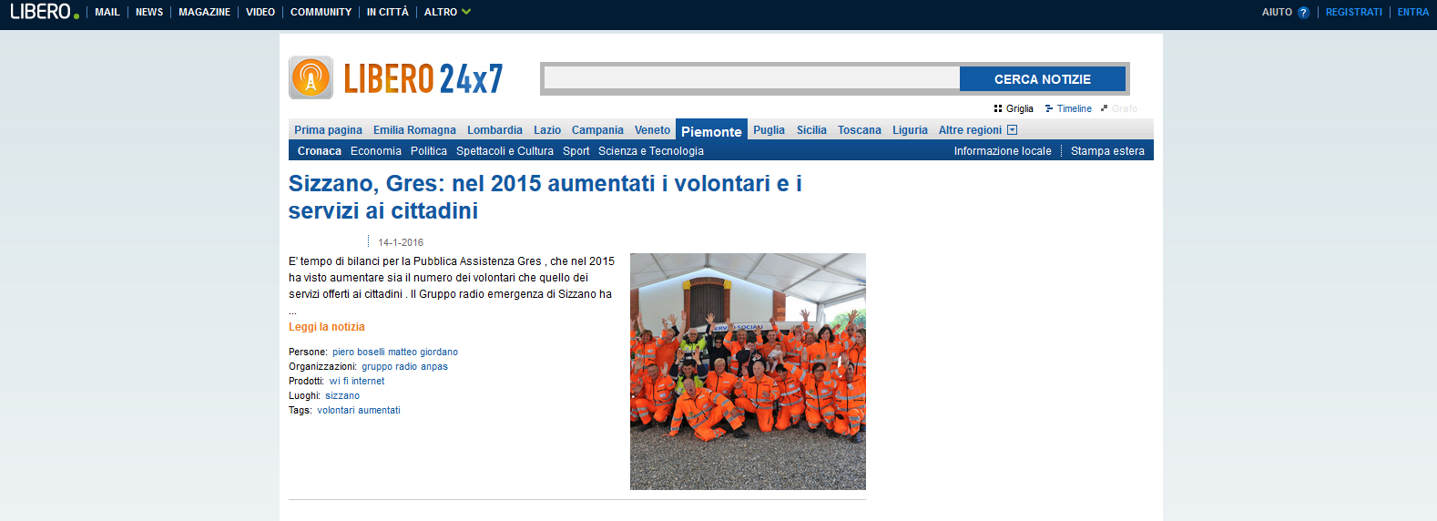 Area StampaRassegna 2016Web Libero.it – Gres Sizzano – Gres: nel 2015 aumentati i volontari e i servizi ai cittadini 14 Gennaio 2016 14/01/2016 – Libero.it – Gres Sizzano – Gres: nel 2015 aumentati i volontari e i servizi ai cittadini Tweet