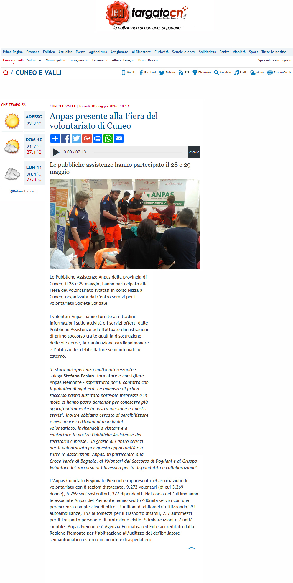 Area StampaRassegna 2016Web Targatocn.it – Anpas presente alla Fiera del volontariato di Cuneo 30 Maggio 2016 30/05/2016 – Targatocn.it – Anpas presente alla Fiera del volontariato di Cuneo Tweet