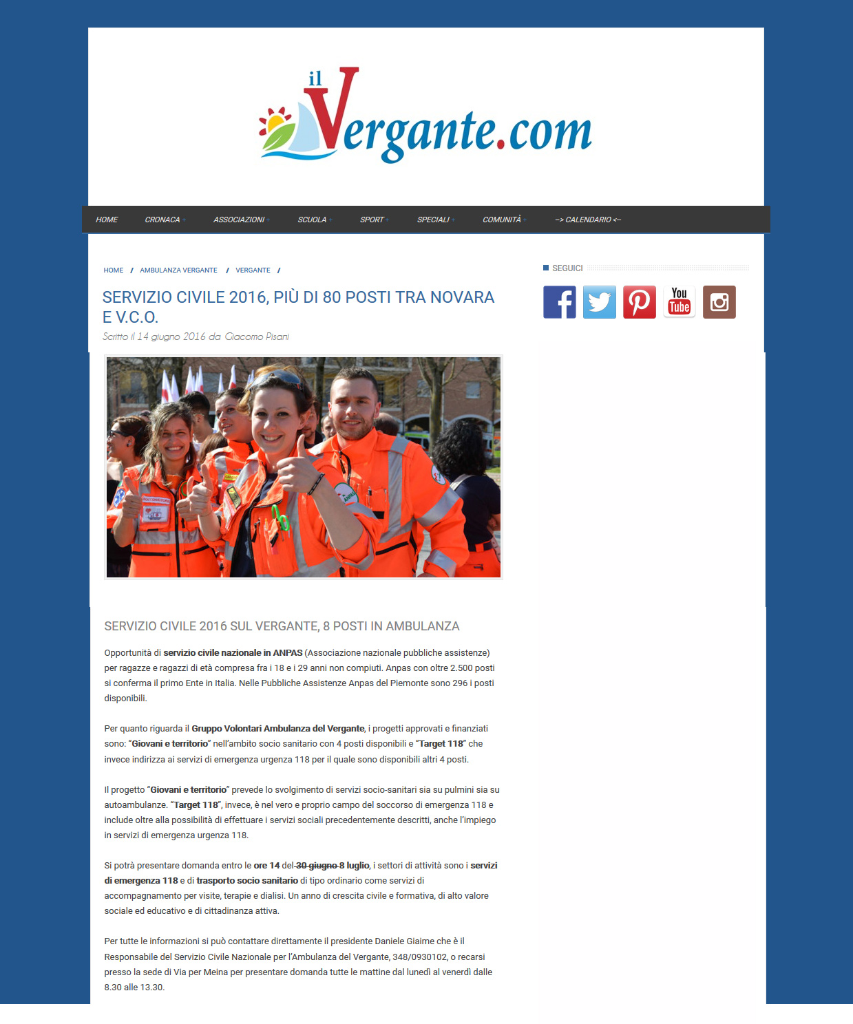 Area StampaRassegna 2016servizio civileWeb Il Vergante.com – Ambulanza del Vergante – Servizio civile 2016, più di 80 posti tra Novara e Vco 14 Giugno 2016 14/06/2016 – Il Vergante.com – Ambulanza del Vergante – Servizio civile 2016, più di 80 posti tra Novara e Vco Tweet