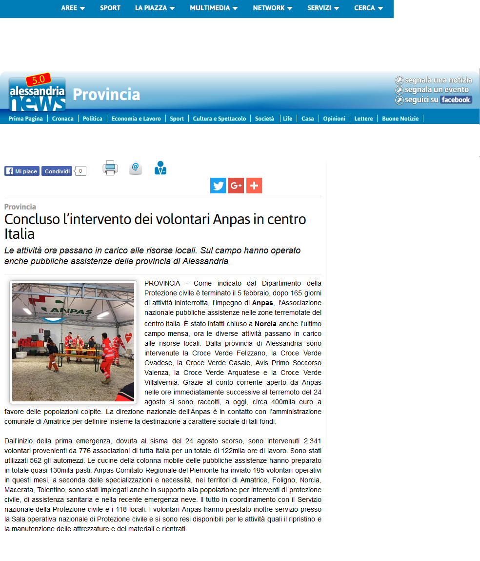 • 07/02/2017 – Alessandrianews.it – Anpas – Concluso l’intervento dei volontari Anpas in centro Italia