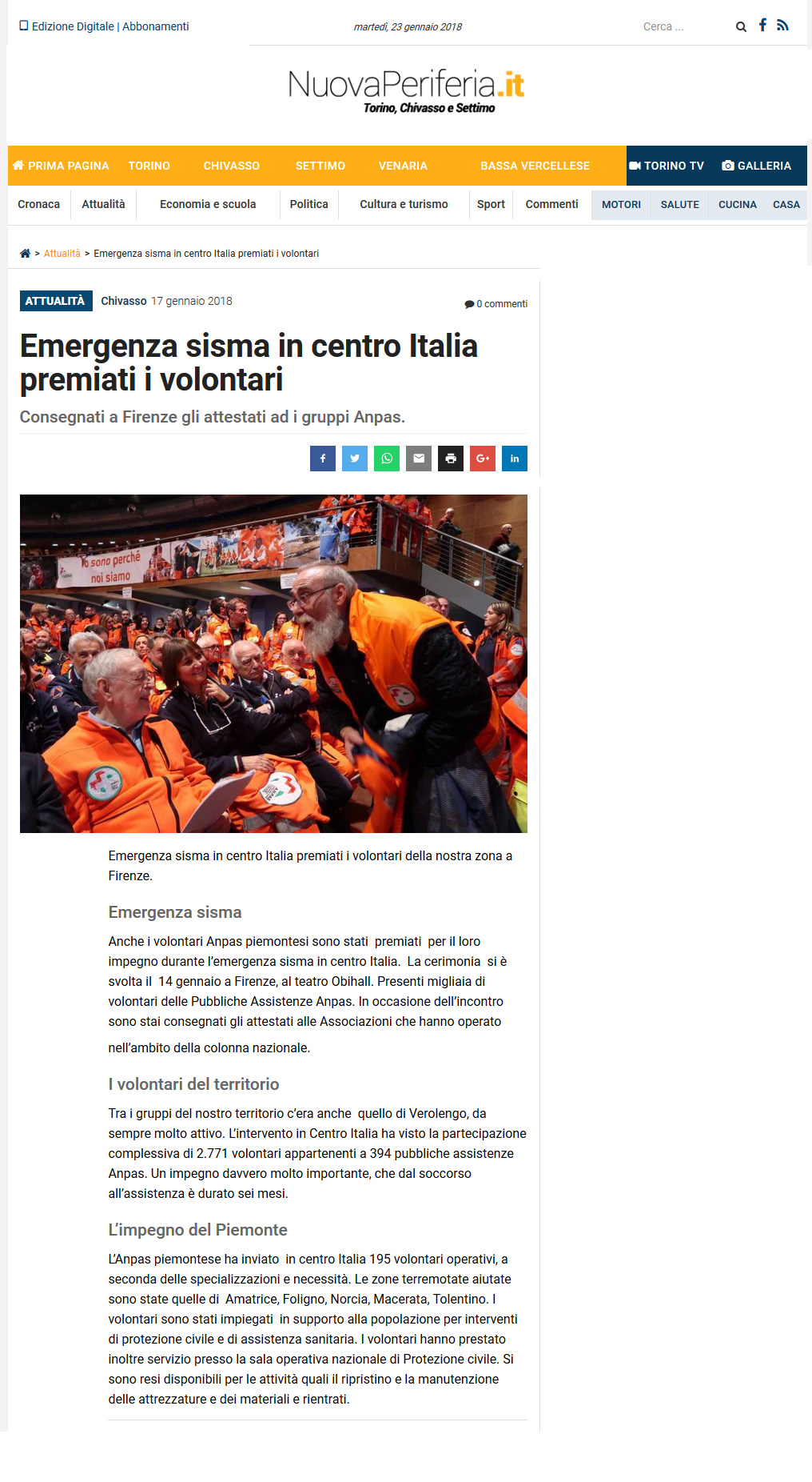 • 17/01/2018 – La Nuova Periferia.it – Anpas – Emergenza sisma in centro Italia, premiati i volontari