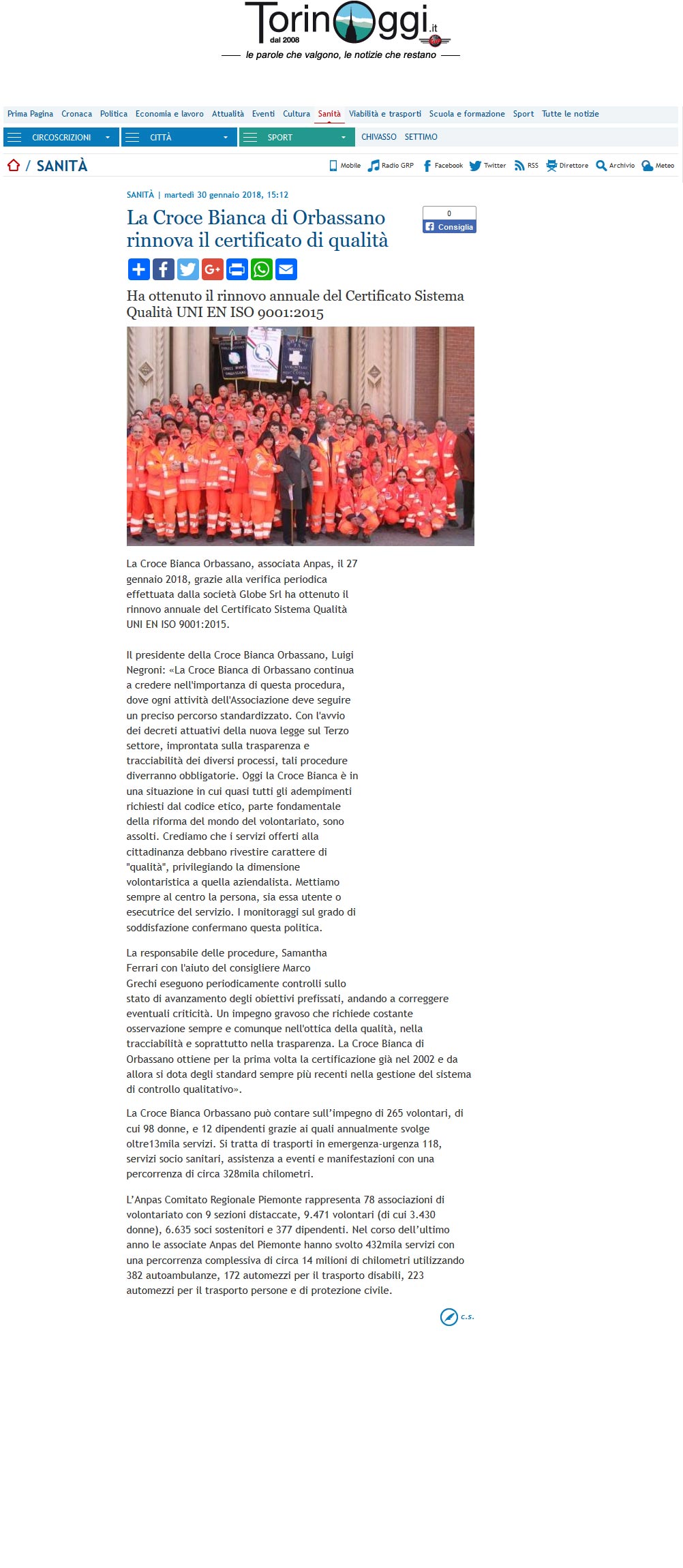 Area StampaRassegna 2018Web TorinOggi.it – La Croce Bianca di Orbassano rinnova il certificato di qualità 30 Gennaio 2018 30/01/2018 – TorinOggi.it – La Croce Bianca di Orbassano rinnova il certificato di qualità Tweet
