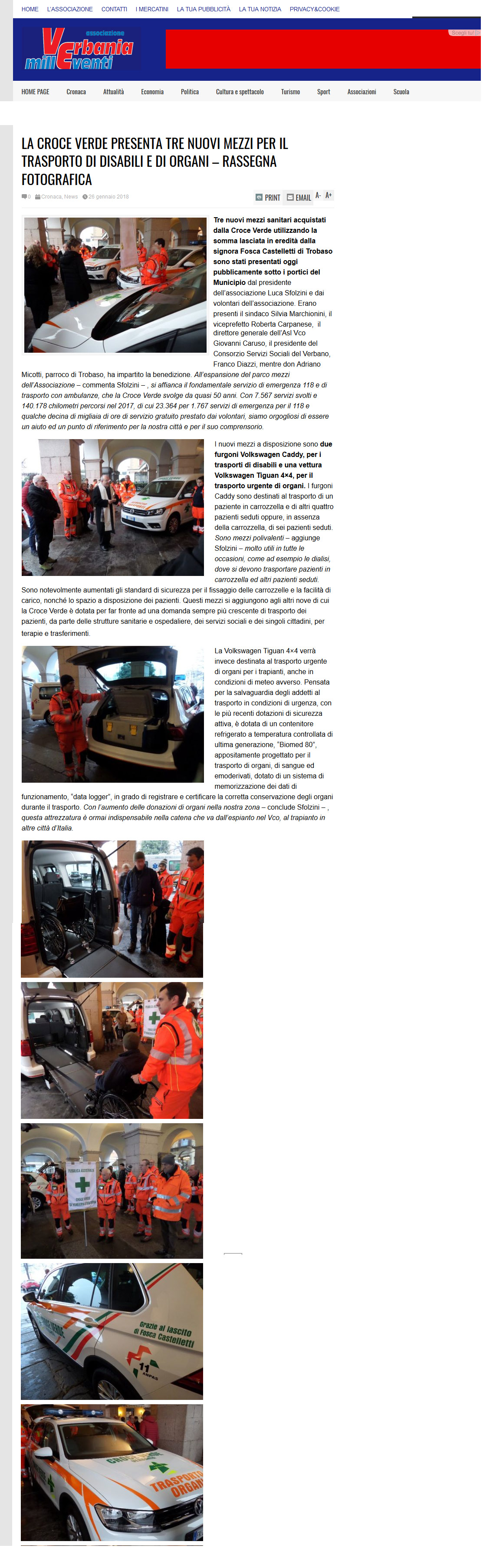 Area StampaRassegna 2018Web VerbaniaMillEventi.org – Croce Verde Verbania – La Croce Verde presenta tre nuovi mezzi per il trasporto di disabili e di organi 26 Gennaio 2018 26/01/2018 – VerbaniaMillEventi.org – Croce Verde Verbania – La Croce Verde presenta tre nuovi mezzi per il trasporto di disabili e di organi Tweet