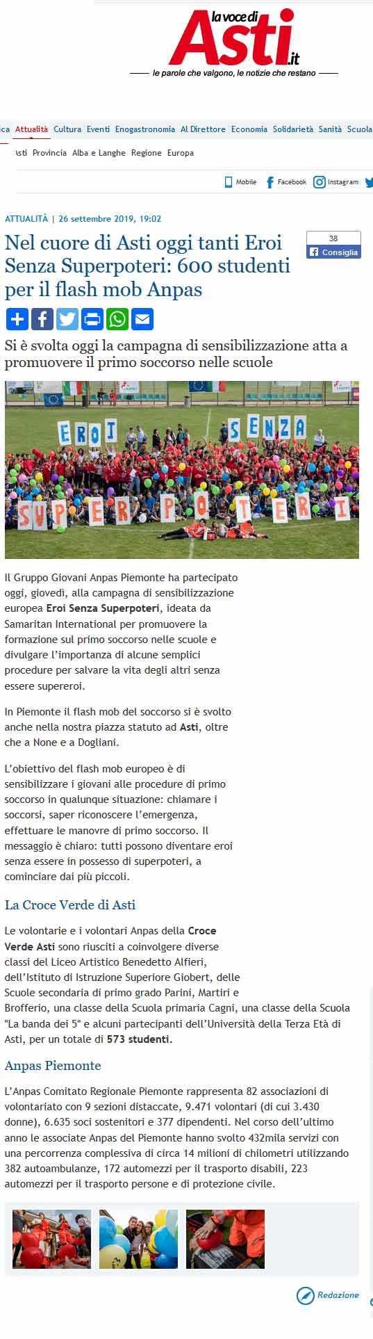 Area StampaRassegna 2019Web La Voce Asti.it – Croce Verde Asti – Nel cuore di Asti oggi tanti Eroi Senza Superpoteri: 600 studenti per il flash mob Anpas 26 Settembre 2019 26/09/2019 – La Voce Asti.it – Croce Verde Asti – Nel cuore di Asti oggi tanti Eroi Senza Superpoteri: 600 studenti per il flash mob Anpas Tweet