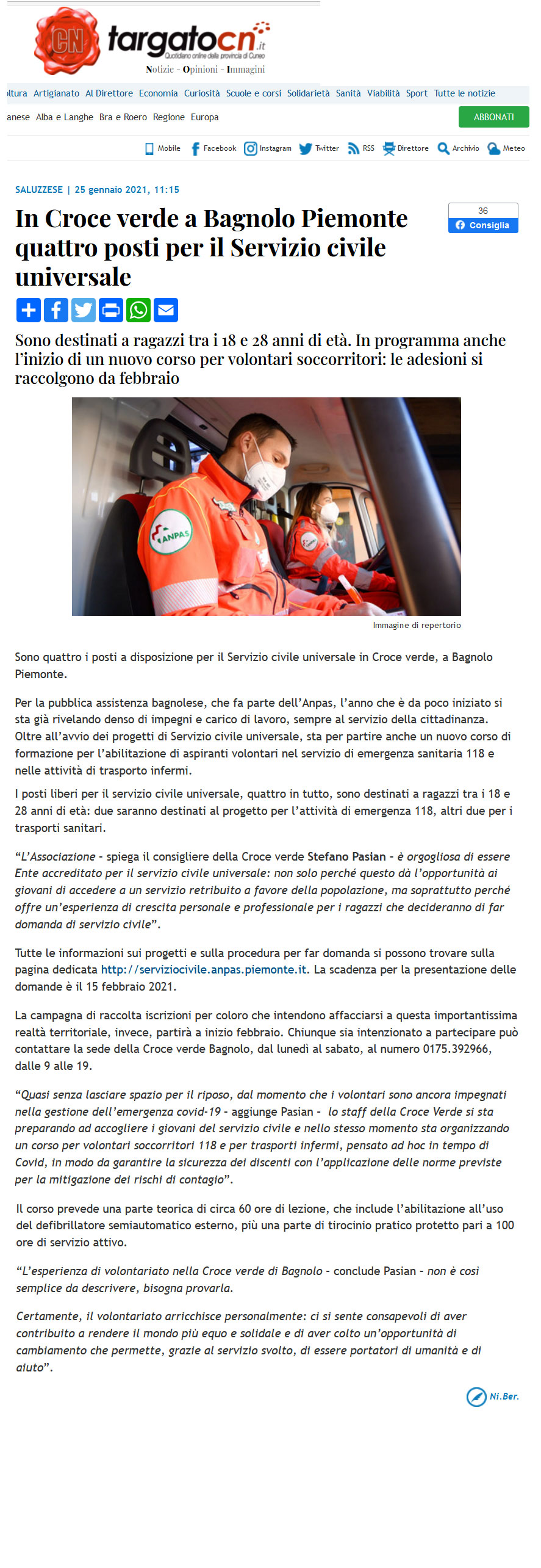 Area StampaRassegna 2021servizio civileWeb Targatocn.it | In Croce verde a Bagnolo Piemonte quattro posti per il Servizio civile universale 25 Gennaio 2021 25/01/2021 Targatocn.it | In Croce verde a Bagnolo Piemonte quattro posti per il Servizio civile universale Tweet