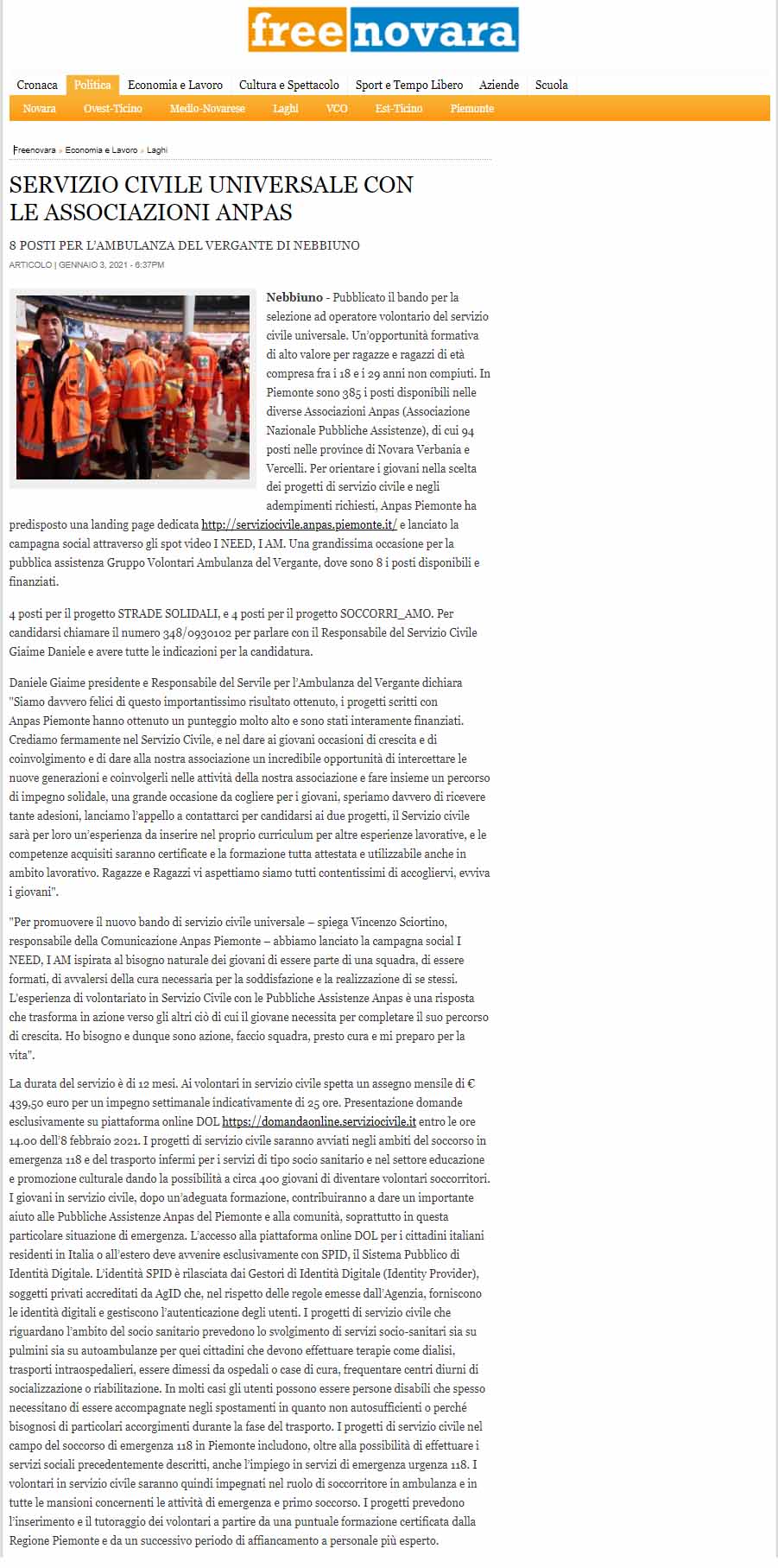 Area StampaRassegna 2022servizio civileWeb Freenovara.it | Anpas | Servizio Civile Universale con le associazioni Anpas 3 Gennaio 2022 03/01/2022 Freenovara.it | Anpas | Servizio Civile Universale con le associazioni Anpas Tweet