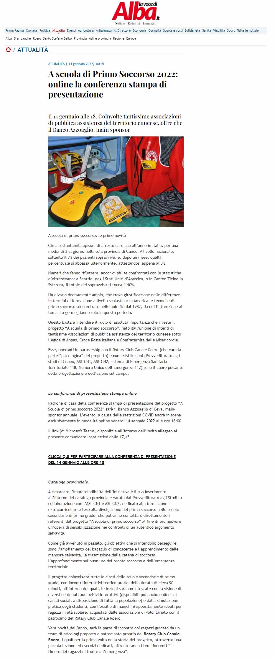 Area StampaRassegna 2022Web LaVocediAlba.it | Anpas | A scuola di Primo Soccorso 2022: online la conferenza stampa di presentazione 11 Gennaio 2022 11/01/2022 LaVocediAlba.it | Anpas | A scuola di Primo Soccorso 2022: online la conferenza stampa di presentazione Tweet