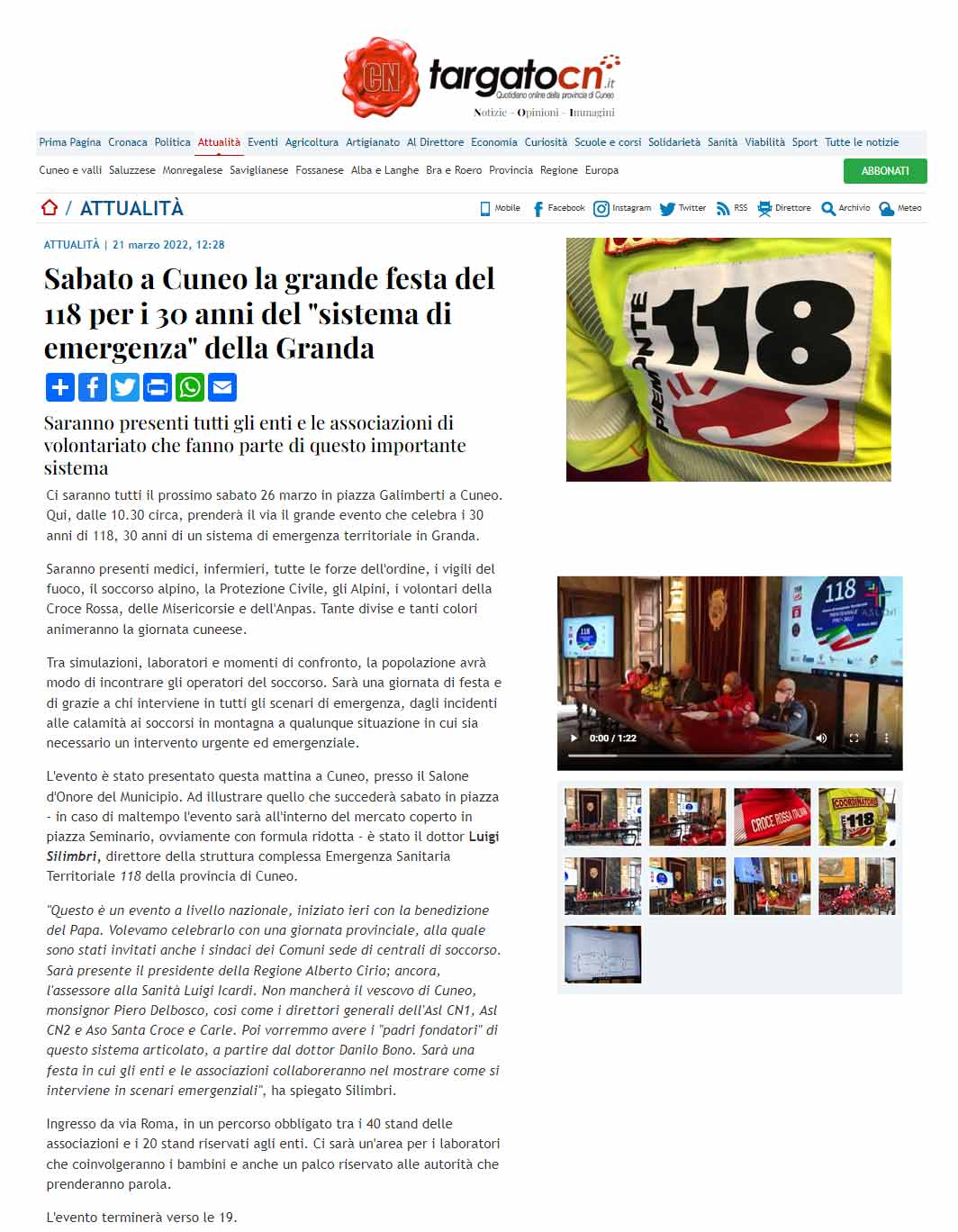 Area StampaRassegna 2022Web Targatocn.it | Anpas Piemonte | Sabato a Cuneo la grande festa del 118 per i 30 anni del “sistema di emergenza” della Granda 21 Marzo 2022 21/03/2022 Targatocn.it | Anpas Piemonte | Sabato a Cuneo la grande festa del 118 per i 30 anni del “sistema di emergenza” della Granda Tweet