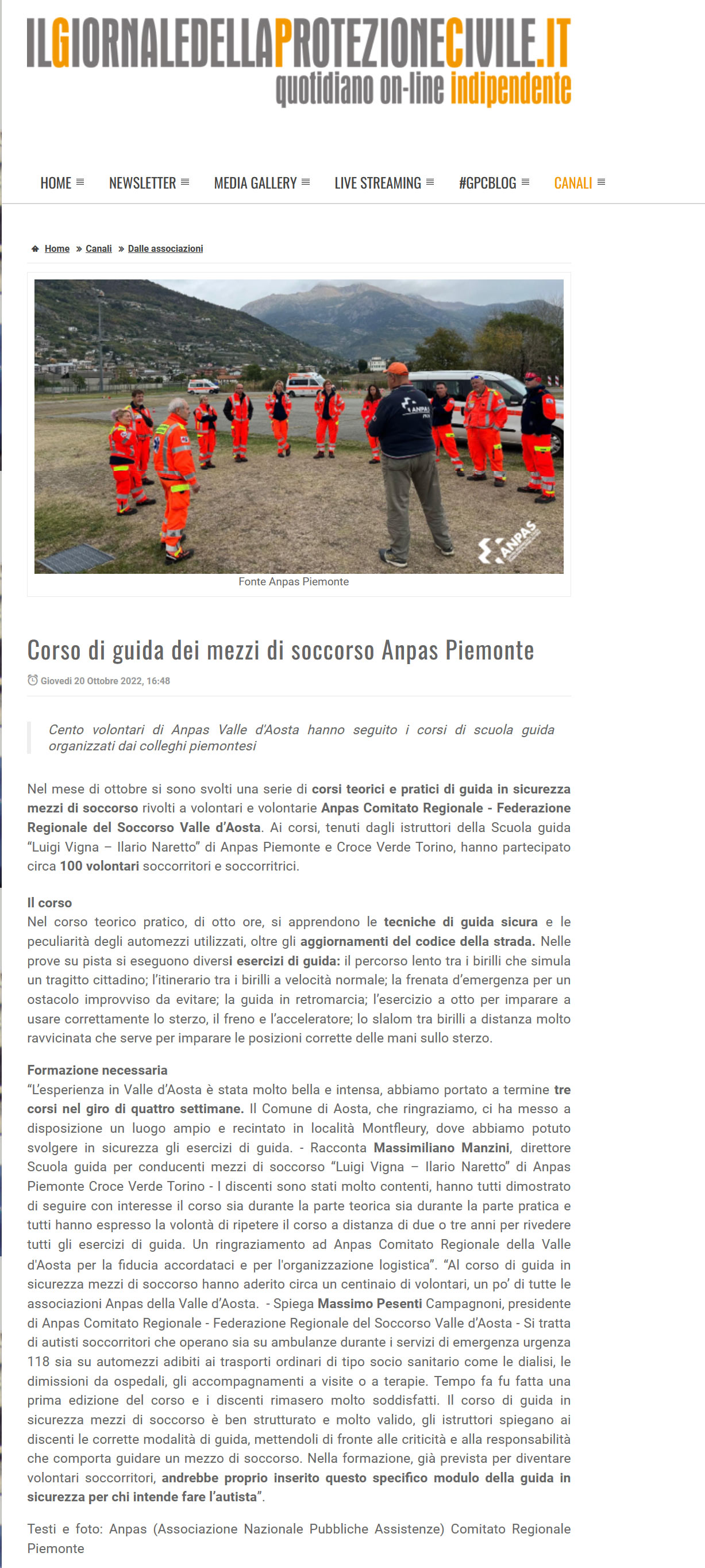 Area StampaRassegna 2022Web Giornale della Protezione Civile.it | Corso di guida dei mezzi di soccorso Anpas Piemonte 20 Ottobre 2022 20/10/2022 Giornale della Protezione Civile.it | Corso di guida dei mezzi di soccorso Anpas Piemonte Tweet