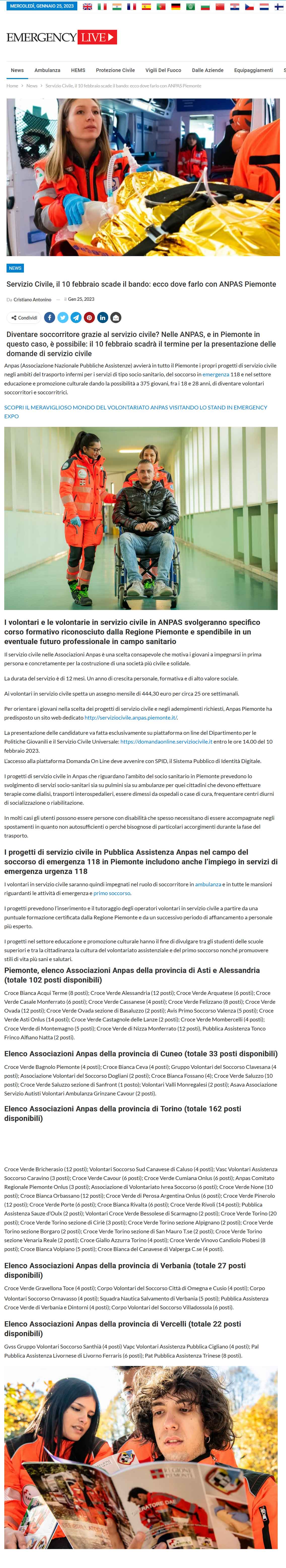 Area StampaRassegna 2023servizio civileWeb EmergencyLive.com | Anpas | Servizio Civile, il 10 febbraio scade il bando: ecco dove farlo con ANPAS Piemonte 25 Gennaio 2023 25/01/2023 EmergencyLive.com | Anpas | Servizio Civile, il 10 febbraio scade il bando: ecco dove farlo con ANPAS Piemonte Tweet