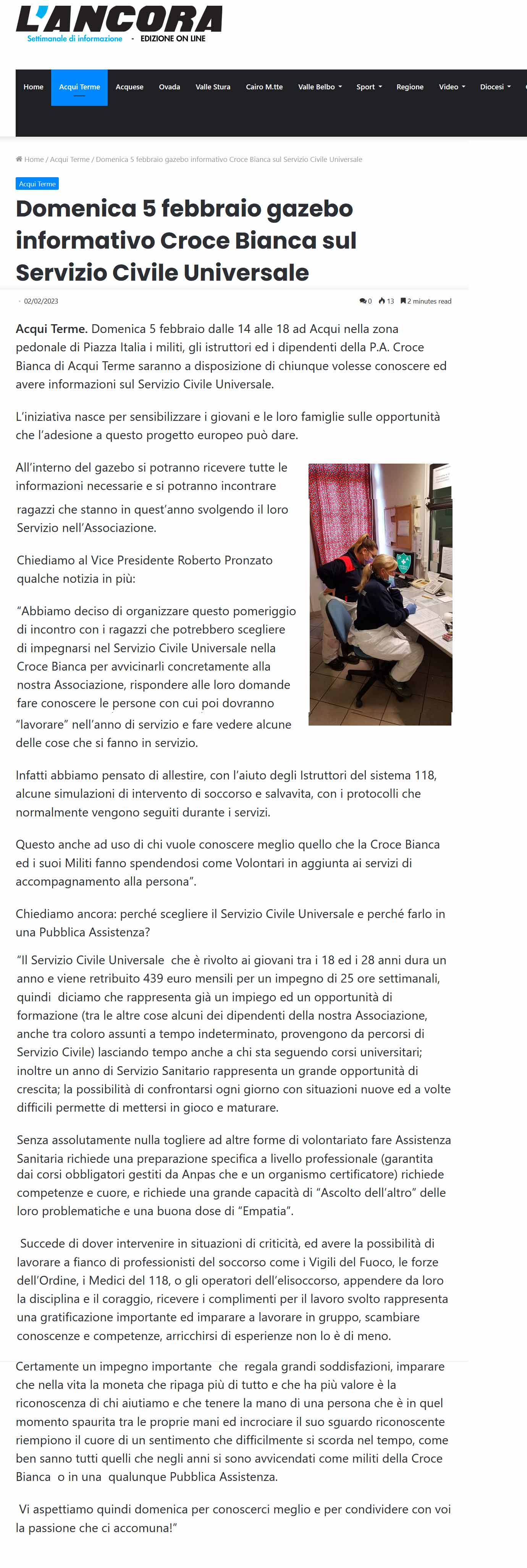 Area StampaRassegna 2023servizio civileWeb L’Ancora | Croce Bianca Acqui Terme | Domenica 5 febbraio gazebo informativo Croce Bianca sul Servizio Civile Universale 2 Febbraio 2023 02/02/2023 L’Ancora | Croce Bianca Acqui Terme | Domenica 5 febbraio gazebo informativo Croce Bianca sul Servizio Civile Universale Tweet