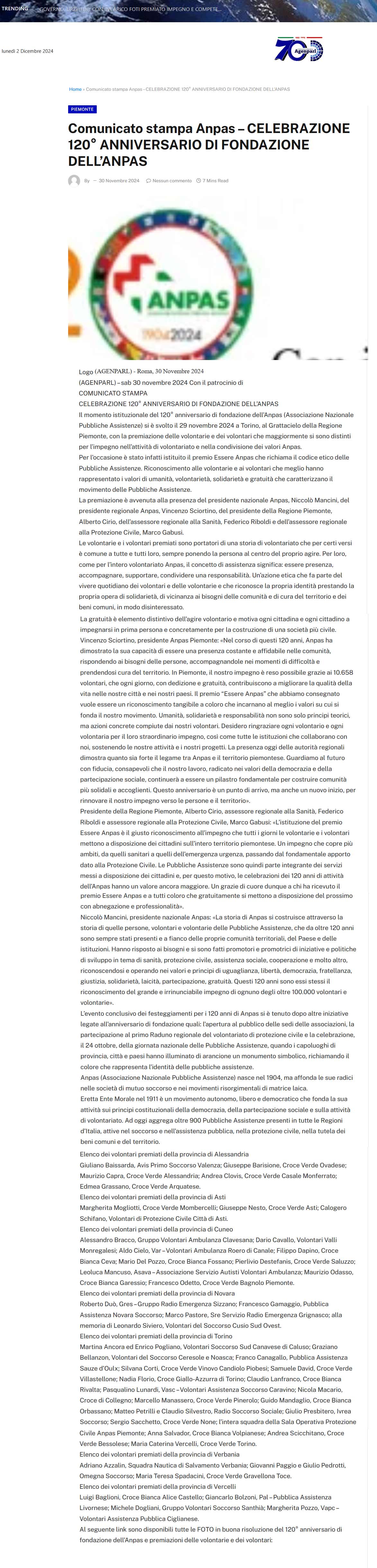 Area StampaOpen Day AnpasRassegna 2024Web AgenParl.eu | Anpas | Celebrazione 120° anniversario di fondazione dell’Anpas 30 Novembre 2024 30/11/2024 AgenParl.eu | Anpas | Celebrazione 120° anniversario di fondazione dell’Anpas Tweet