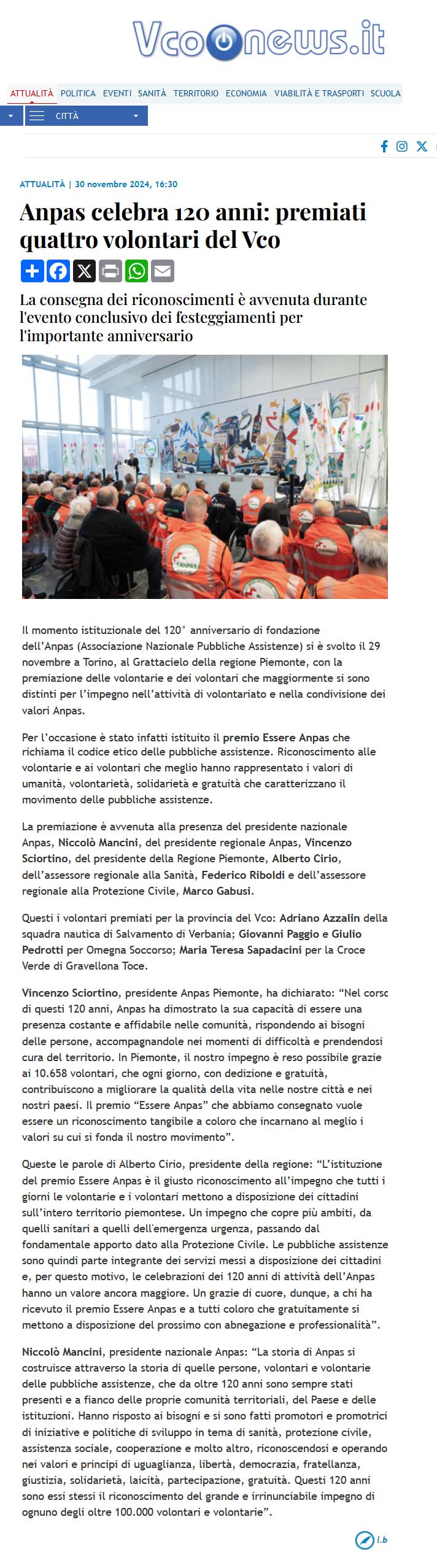 Area StampaOpen Day AnpasRassegna 2024Web VcoNews.it | Anpas celebra 120 anni: premiati quattro volontari del Vco 30 Novembre 2024 30/11/2024 VcoNews.it | Anpas celebra 120 anni: premiati quattro volontari del Vco Tweet