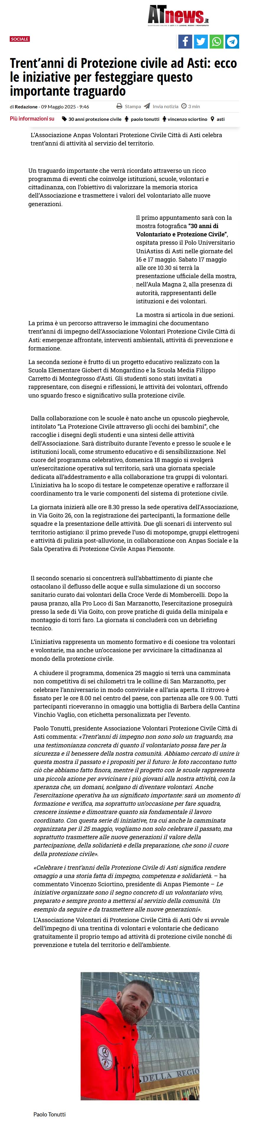 30 anni Protezione Civile Città di AstiArea StampaRassegna 2025Web AtNews.it | Protezione Civile Città di Asti | Trent’anni di protezione civile ad Asti: ecco le iniziative per festeggiare questo importante traguardo 9 Maggio 2025 09/05/2025 AtNews.it | Protezione Civile Città di Asti | Trent’anni di protezione civile ad Asti: ecco le iniziative per festeggiare questo importante traguardo Tweet