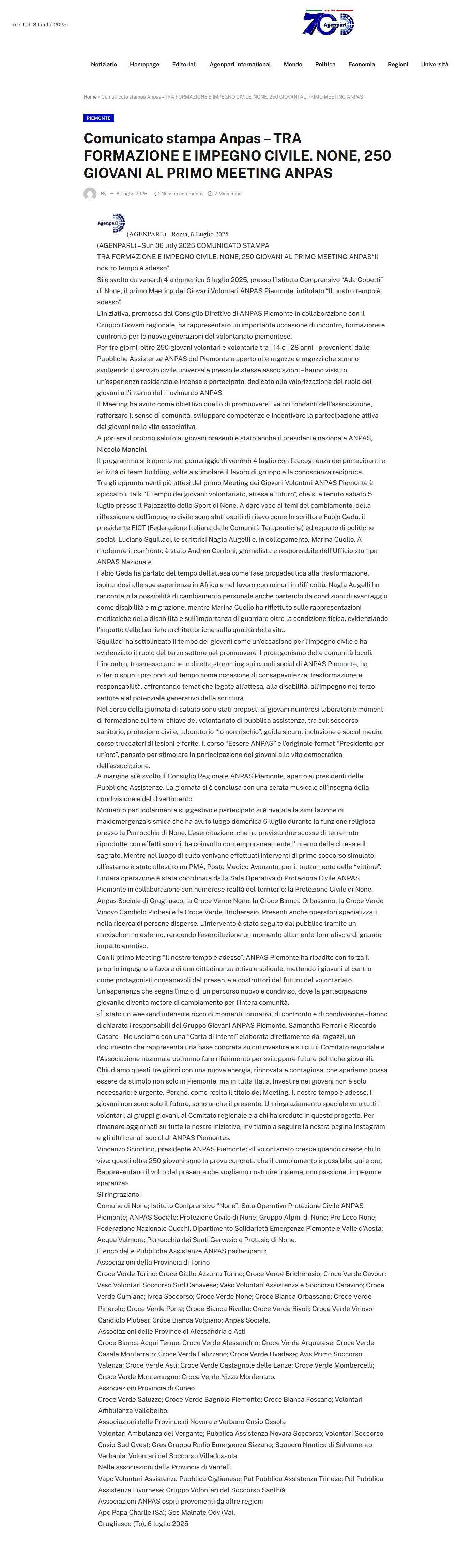 Area StampaMeeting Giovani ANPASRassegna 2025servizio civileWeb AgenParl.eu | Anpas | Tra formazione e impegno civile. None, 250 giovani al primo Meeting Anpas 6 Luglio 2025 06/07/2025 AgenParl.eu | Anpas | Tra formazione e impegno civile. None, 250 giovani al primo Meeting Anpas Tweet