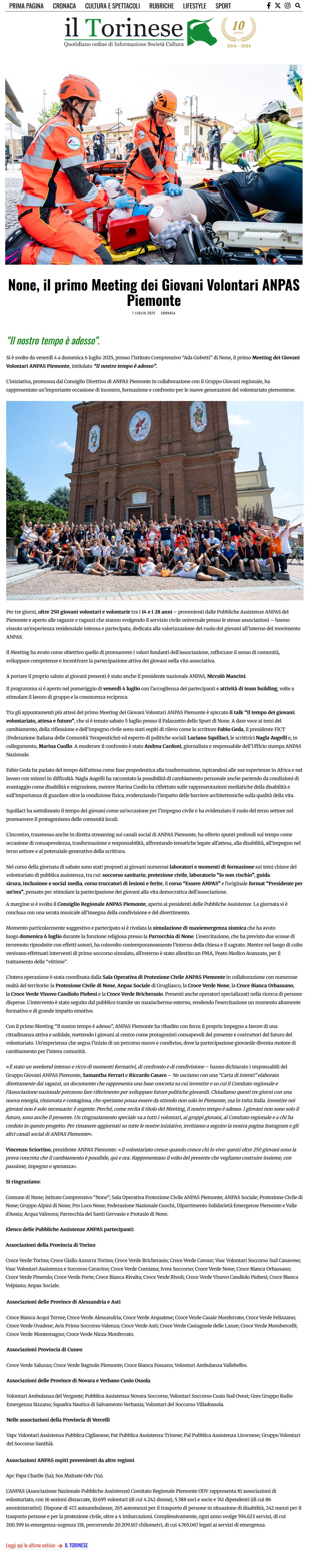 Area StampaMeeting Giovani ANPASRassegna 2025servizio civileWeb Il Torinese.it | Anpas | None, il primo Meeting dei Giovani Volontari ANPAS Piemonte 7 Luglio 2025 07/07/2025 Il Torinese.it | Anpas | None, il primo Meeting dei Giovani Volontari ANPAS Piemonte Tweet