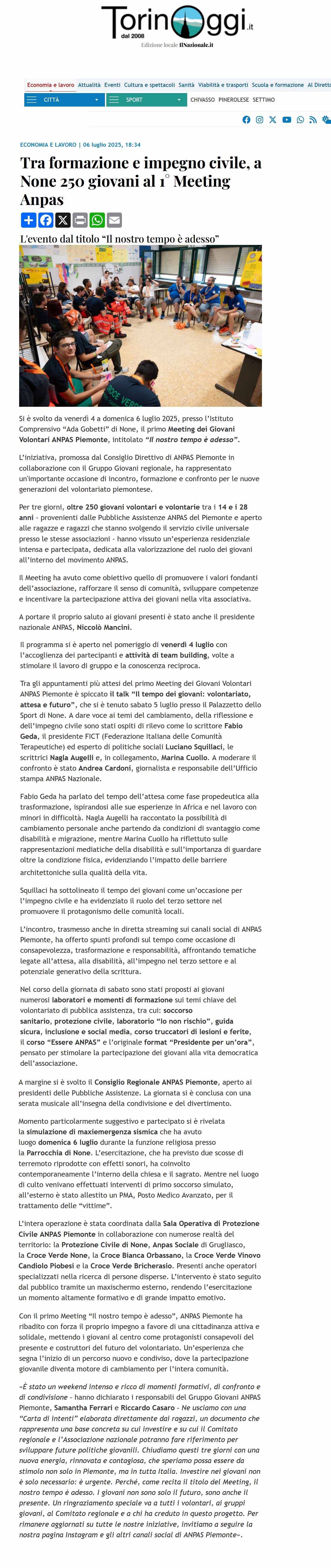 Area StampaMeeting Giovani ANPASRassegna 2025servizio civileWeb Torino Oggi.it | Anpas | Tra formazione e impegno civile, a None 250 giovani al 1° Meeting Anpas 6 Luglio 2025 06/07/2025 Torino Oggi.it | Anpas | Tra formazione e impegno civile, a None 250 giovani al 1° Meeting Anpas Tweet