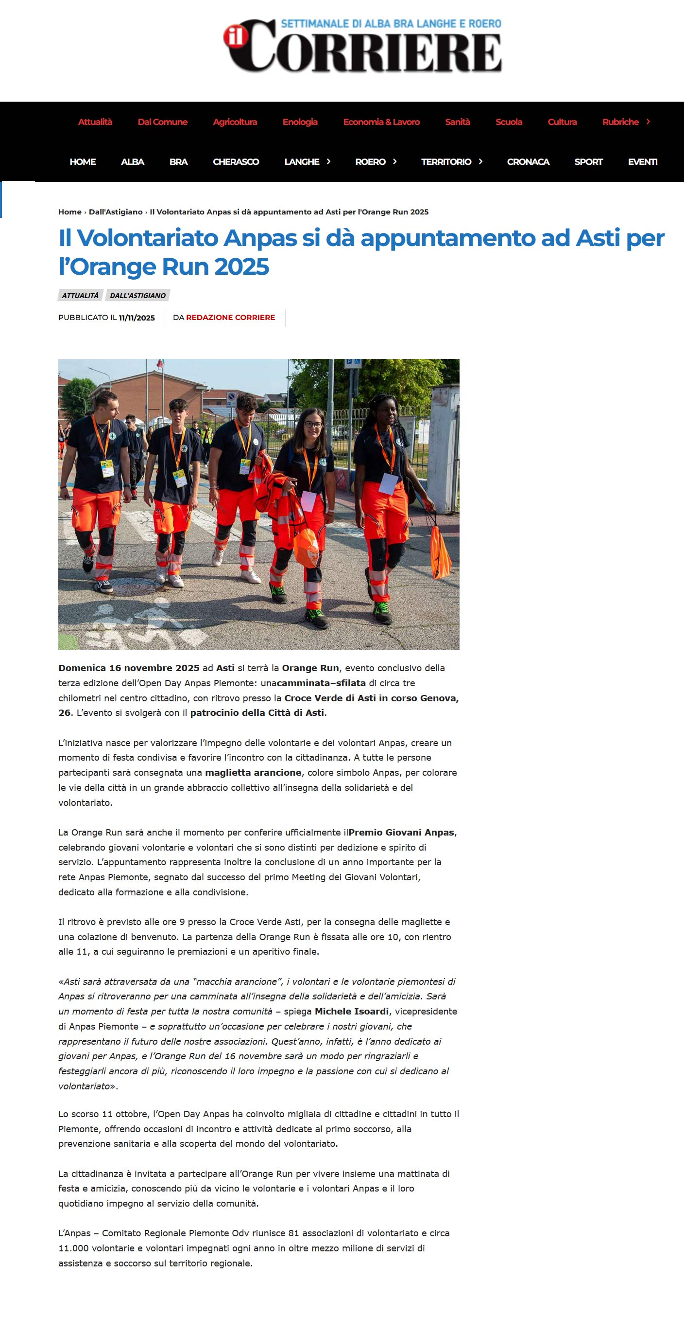 Area StampaNewOpen Day AnpasRassegna 2025Web Il Corriere di Alba.net | Anpas | Il Volontariato Anpas si dà appuntamento ad Asti per l’Orange Run 2025 11 Novembre 2025 11/11/2025 Il Corriere di Alba.net | Anpas | Il Volontariato Anpas si dà appuntamento ad Asti per l’Orange Run 2025 Tweet