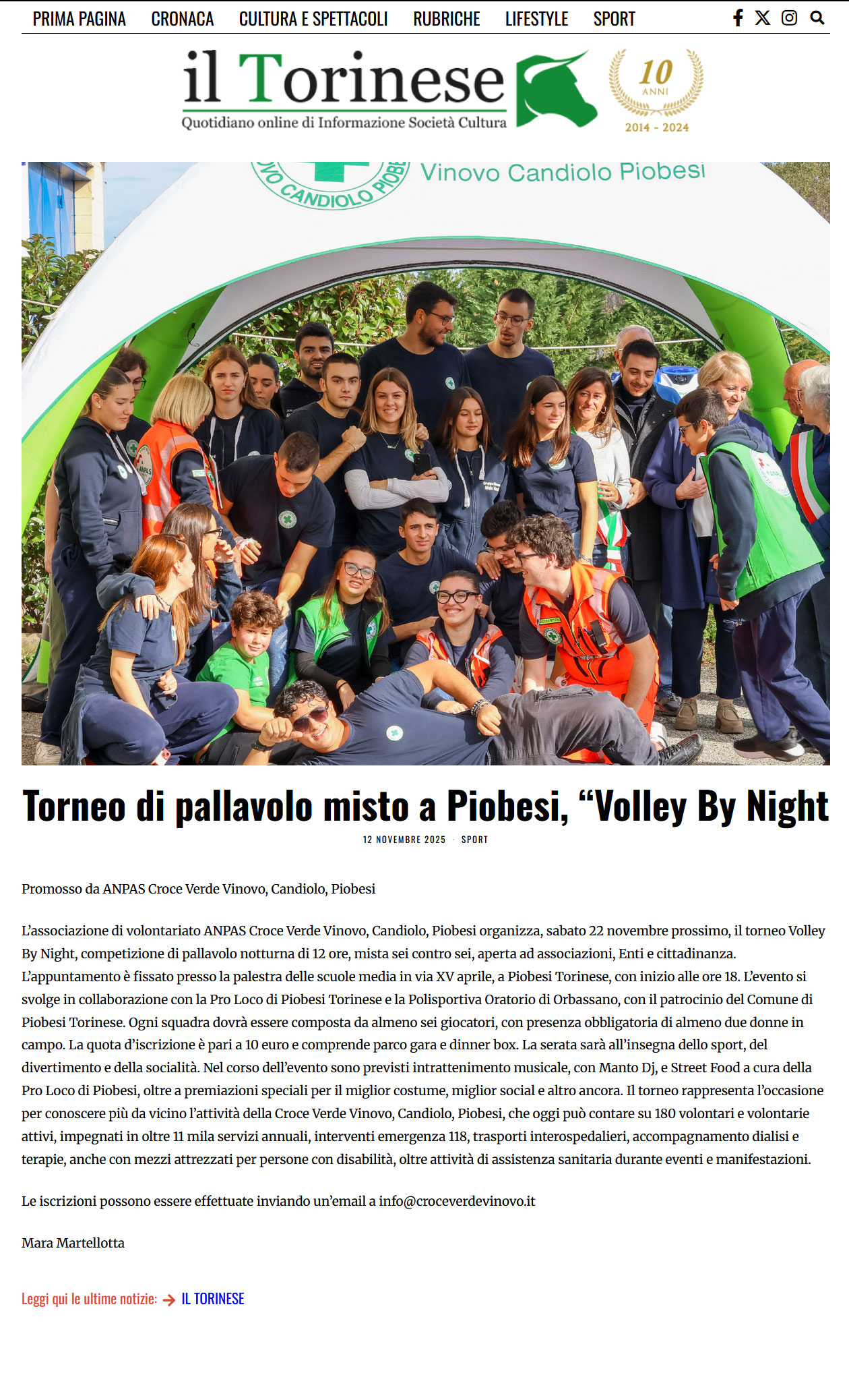 • 12/11/2025 Il Torinese.it | Croce Verde Vinovo Candiolo Piobesi | Torneo di pallavolo misto a Piobesi, “Volley By Night”