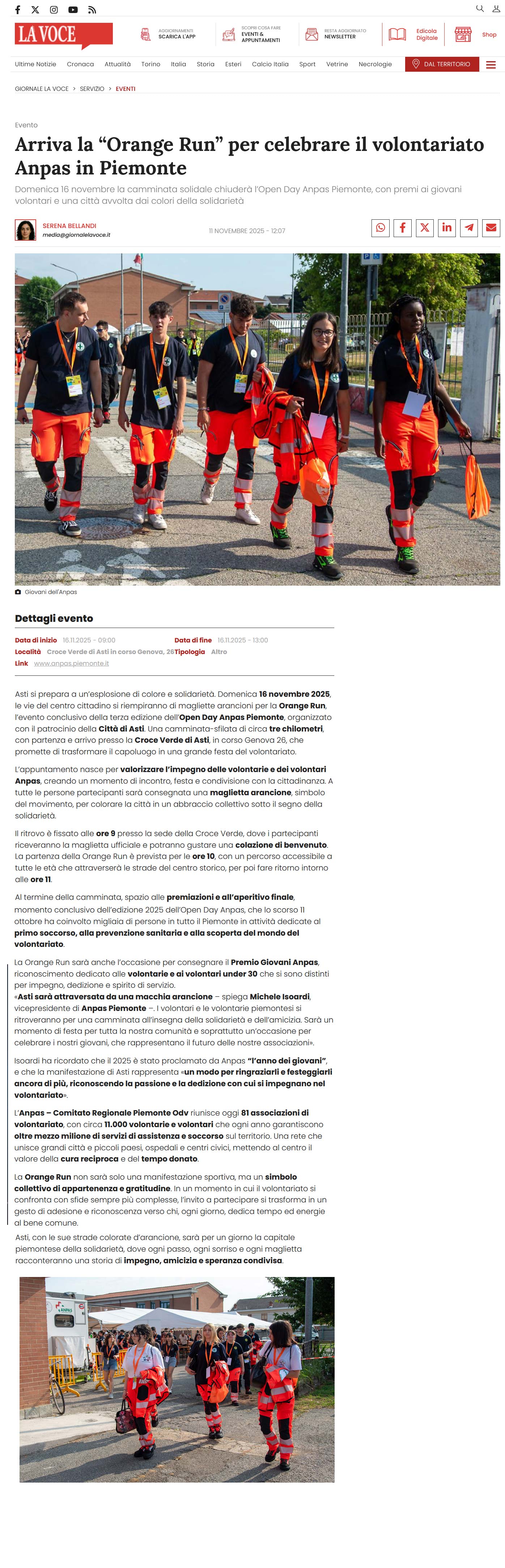 Area StampaNewOpen Day AnpasRassegna 2025Web La Voce di Asti.it | Anpas | Arriva la “Orange Run” per celebrare il volontariato Anpas in Piemonte 11 Novembre 2025 11/11/2025 La Voce di Asti.it | Anpas | Arriva la “Orange Run” per celebrare il volontariato Anpas in Piemonte Tweet